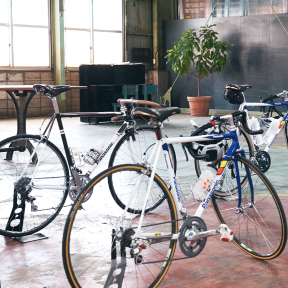 荒川右岸、羽根倉橋近くの「KURU」は、サイクリング途中に立ち寄りたいソフトクリーム店。併設された展示ルームで東京サンエスのパーツを手に取りながら、仲間と語らう時間も魅力。