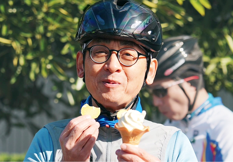 途中サイクリスト間では有名なフォトスポットである彩湖の水辺のステージ(通称ニョロニョロ)や、芋ようかんが有名な「舟和」、サイクリストの憩いの場であるソフトクリーム店「KURU」などへの寄り道を楽しみながら、オーナー様同士や、ゲスト・社員との交流を深めていただきました。