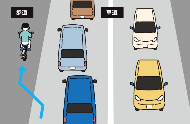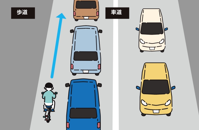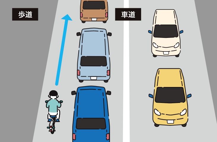 たとえ車道が渋滞していたり、危険だと感じたとしても、歩道を通行するのは違反です。