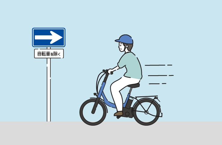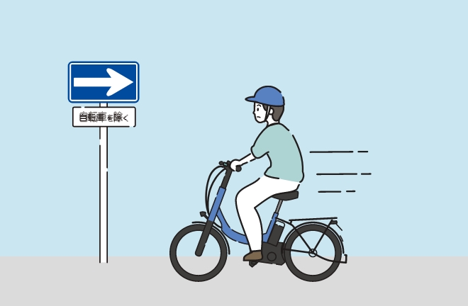 「自転車を除く」という補助標識がある場合は、双方向に通行できます。進行方向の車道の左端に寄って通行しましょう。