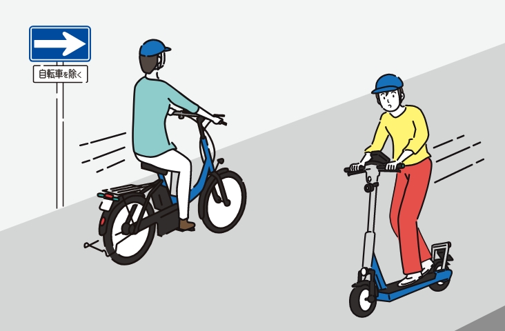 特定小型原動機付自転車のうち、次の条件を満たすものを特例特定小型原動機付自転車といい、例外的に歩道(自転車歩道通行可の標識・標示がある場合のみ)を通行することができます。