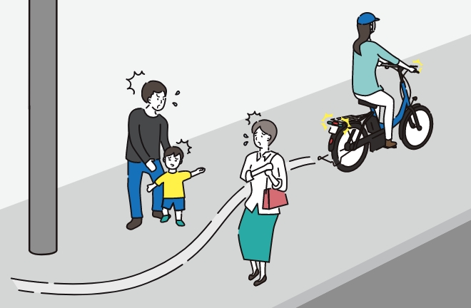 ・歩道を通行する際は、歩行者優先です。