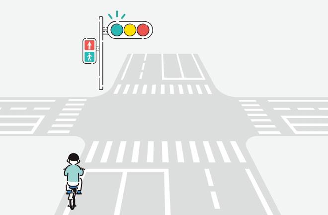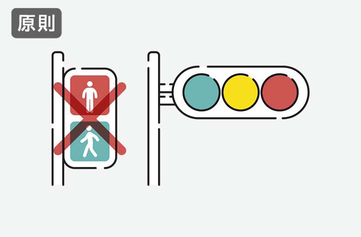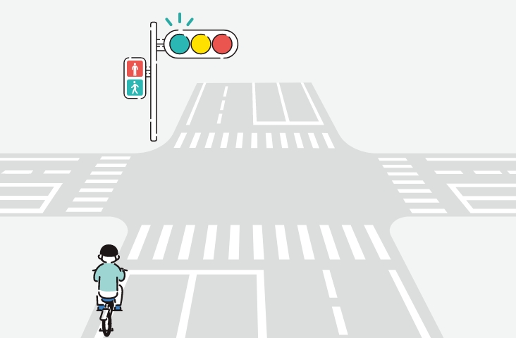 ただし、歩行者用信号機に「歩行者・自転車専用」の標示板がある場合は、歩行者用の信号機に従います。