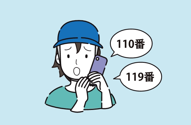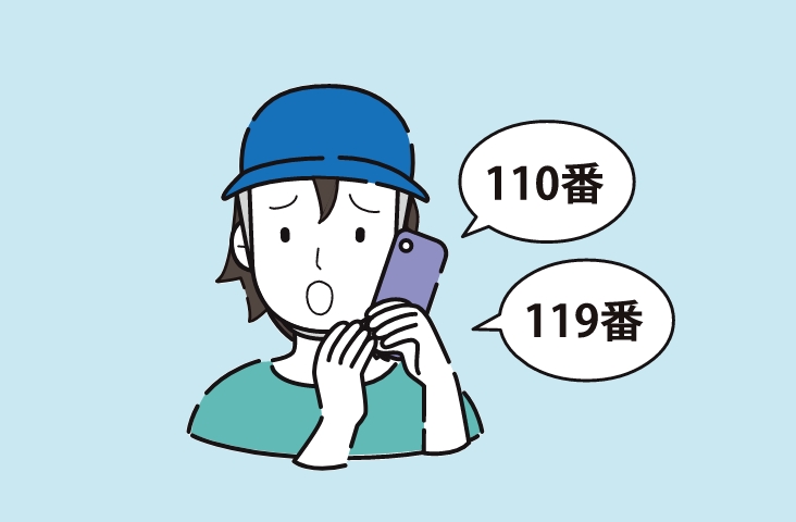 運転者の義務として、負傷者の救護、危険防止の措置(事故の続発を防ぐために、安全な場所に車両を移動など)、110番及び119番への通報を必ずしましょう。